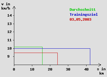 | 06.05.2003 | ca. 12 km | 1:11:20 | 155 | 23 °C | Lockerer Regenerationslauf. Die letzte Viertelstunde stieg der Puls auf 160 |