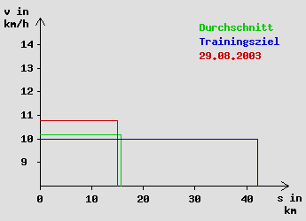 | 09.09.2003 | ca. 16 km | 1:30:15 | 150 | 20 °C | Lockerer Lauf zum Abbau des Muskelkaters |