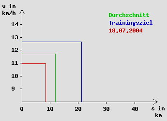 Dieses Diagramm zeigt den einzelnen Lauf (rot) im Vergleich zum Trainingsdurchschnitt und zum Trainingsziel.