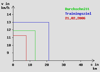Dieses Diagramm zeigt die Verteilung und Länge der Trainingsläufe über den gesamten Zeitraum der Vorbereitung.    Dieses Diagramm zeigt den einzelnen Lauf (rot) im Vergleich zum Trainingsdurchschnitt und zum Trainingsziel.
