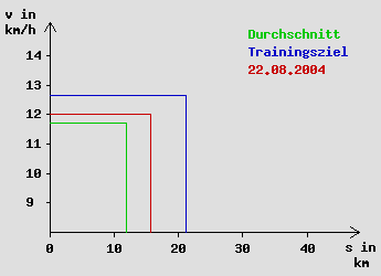 Dieses Diagramm zeigt den einzelnen Lauf (rot) im Vergleich zum Trainingsdurchschnitt und zum Trainingsziel.